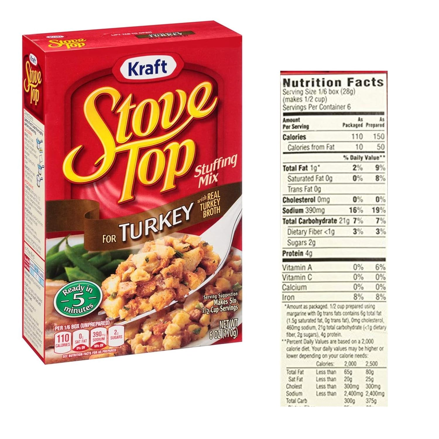 Stove Top Stuffing Mix For Turkey - 6oz : Target Use it for recipes such as Ultimate Leftover Turkey Sandwich or Easy Turkey Pot Pie. Versatile pantry staple; can be enjoyed as stuffing or as an ingredient in many dishes. Boxed stuffing ready in just 5 minutes. 110 calories per serving and 6 servings per package. Serve it as the perfect stuffing side at any family meal.