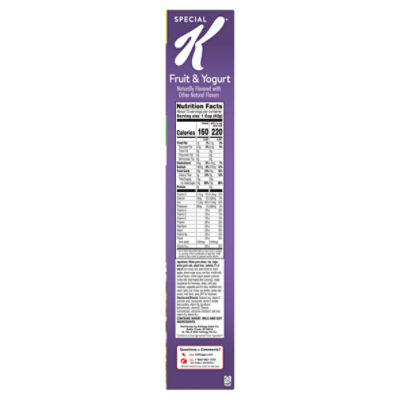 Kellogg's Special K Fruit and Yogurt Breakfast Cereal - H-E-B Kellogg's Special K Fruit and Yogurt Breakfast Cereal ; Cholesterol 0mg, 0% ; Sodium 190mg, 8% ; Potassium 90mg, 2% ; Total Carbohydrate 36g, 13% ...