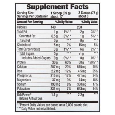 Body Fortress Super Advanced Vanilla Whey Protein *This product is made with a protein blend that is 100% whey protein. Body Fortress® super advanced whey protein delivers a powerful blend of premium proteins and the perfect combination of BCAAs athletes need to support lean muscle mass and maximize their training. ... Nutrition Facts Serving Size: 2.0 scoops Servings per Container: 14. Title ... Body Fortress Whey Protein Nutrition Facts & Calories - Self Nutrition facts and Information for Body Fortress Whey Protein in Home. Tools. Compare Foods. Custom Entry Tool; Nutrient Search Tool; Caloric Ratio Search; Nutritional Target Map Search; Daily Needs Calculator; Topics. Better Choices Diet; Glycemic Index; Fullness Factor; Fatty Acids; Food Additives; Effects of Processing Food; My ND. My Foods ...