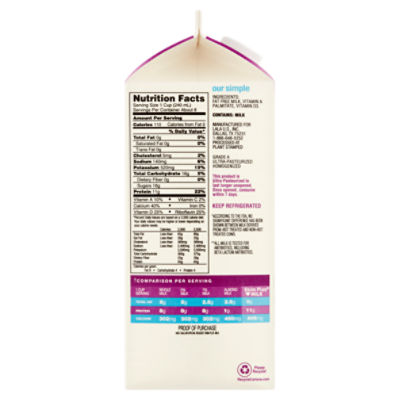 Fat free half and half nutrition label